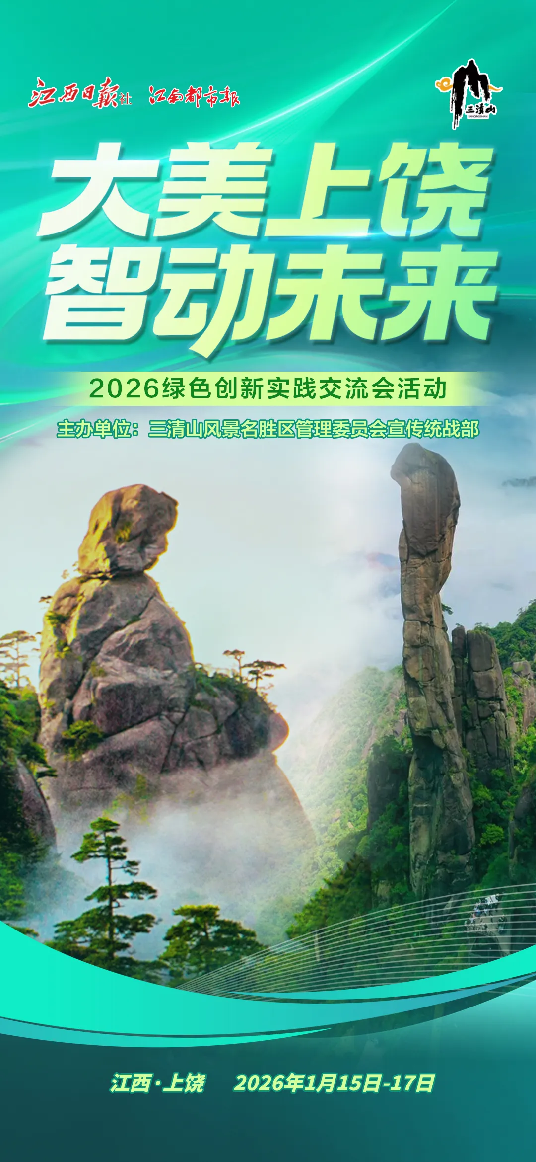 为深入探寻上饶以生态文旅赋能城乡文旅融合、以科技创新驱动发展的实践路径,“大美上饶·智动未来”——2026绿色创新实践交流会于1月15日至17日举行。活动将汇聚多方视角,实地走访三清山文旅融合前沿与上饶经开区产业创新高地,共同解读这座赣东北中心城市在绿色转型与动能转换方面的探索与成就。
