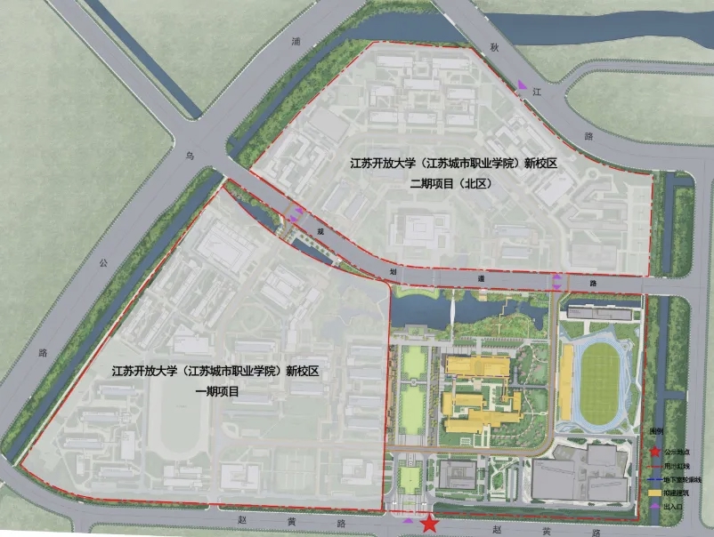 据了解,江苏开放大学新校区二期项目位于南京浦口区浦乌公路东侧,赵黄路北侧,秋江路南侧。校区分为南北区。其中,南区与一期新校区相邻,用地面积222191.43平方米,总建筑面积约41740.4平方米。其中,地上建筑面积约32679.4平方米,地下建筑面积约9061平方米。项目主要建设内容为行政办公楼、教学楼、看台。该项目建筑高度35.45米,绿地率50%。